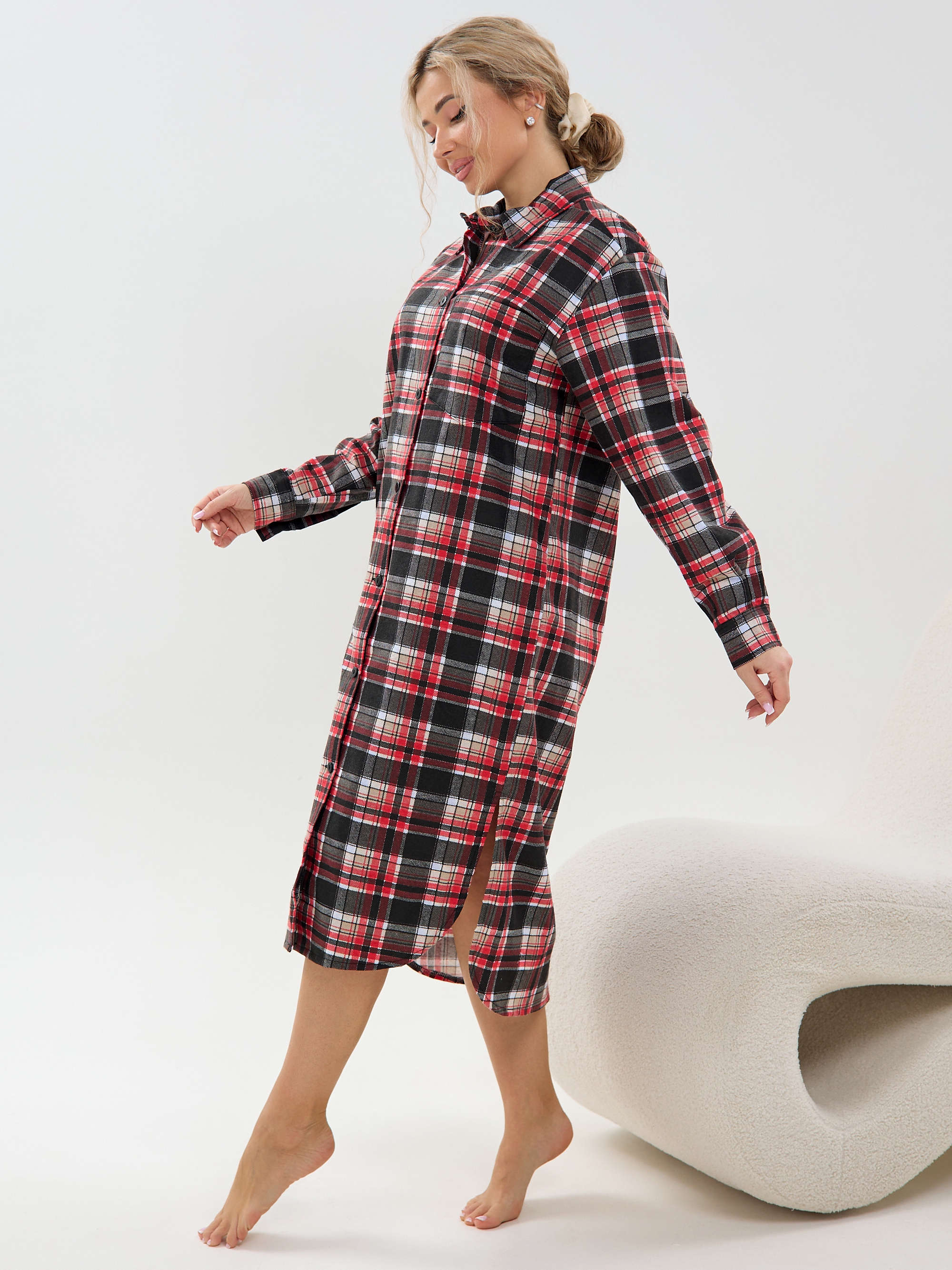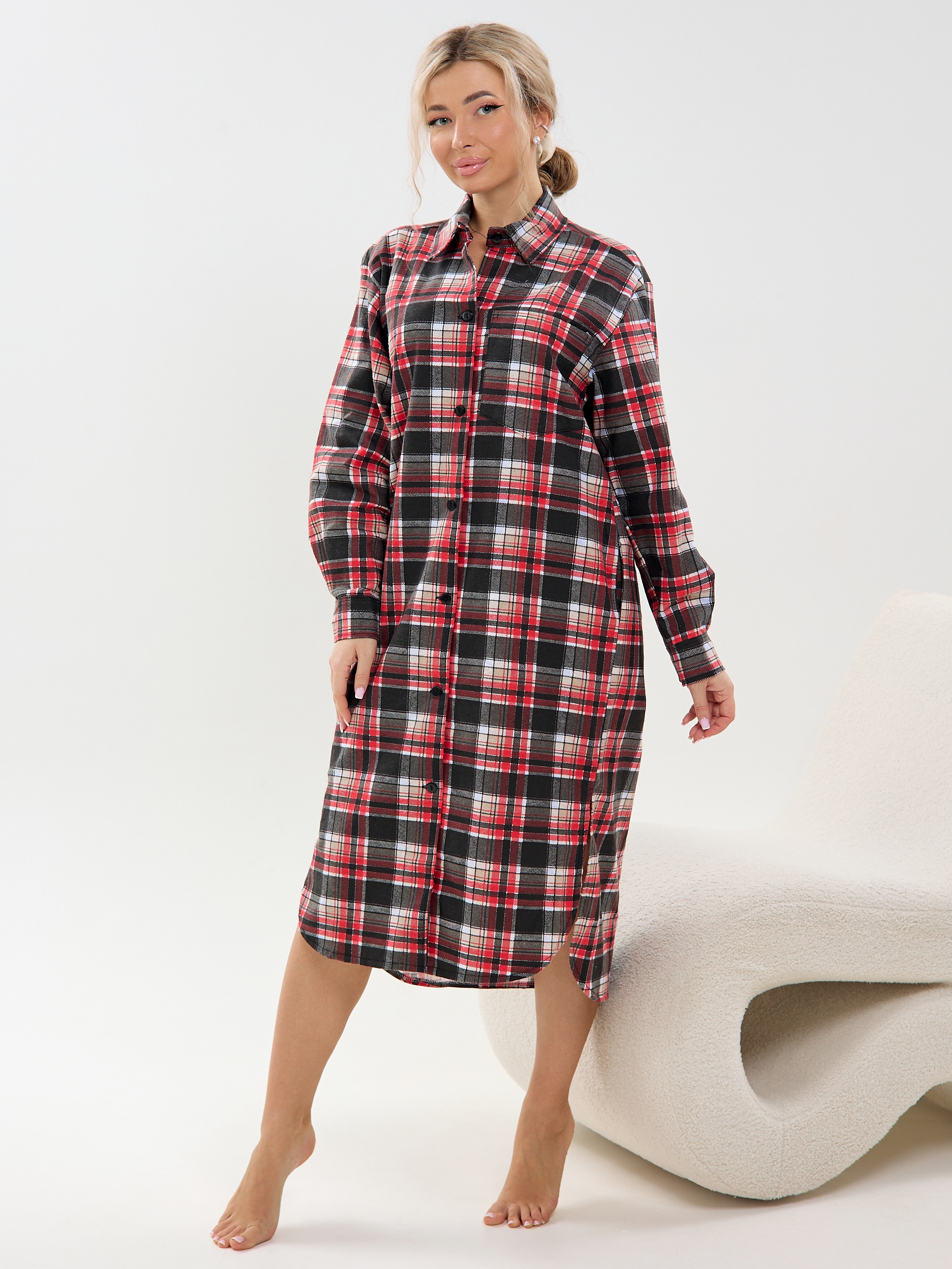 ГлавнаяЖенская одеждаХалатыХалат-рубашка фланель м41клетка