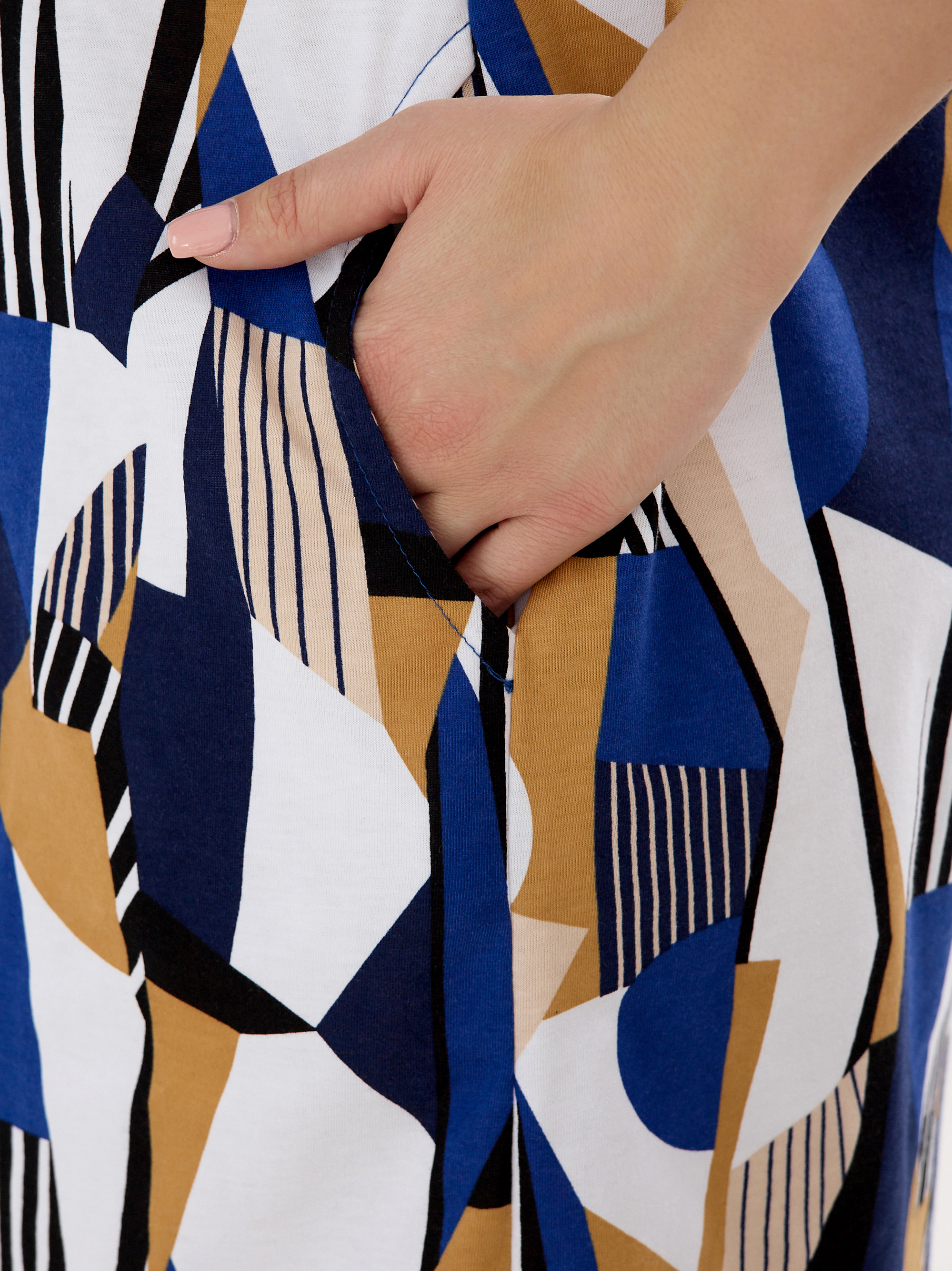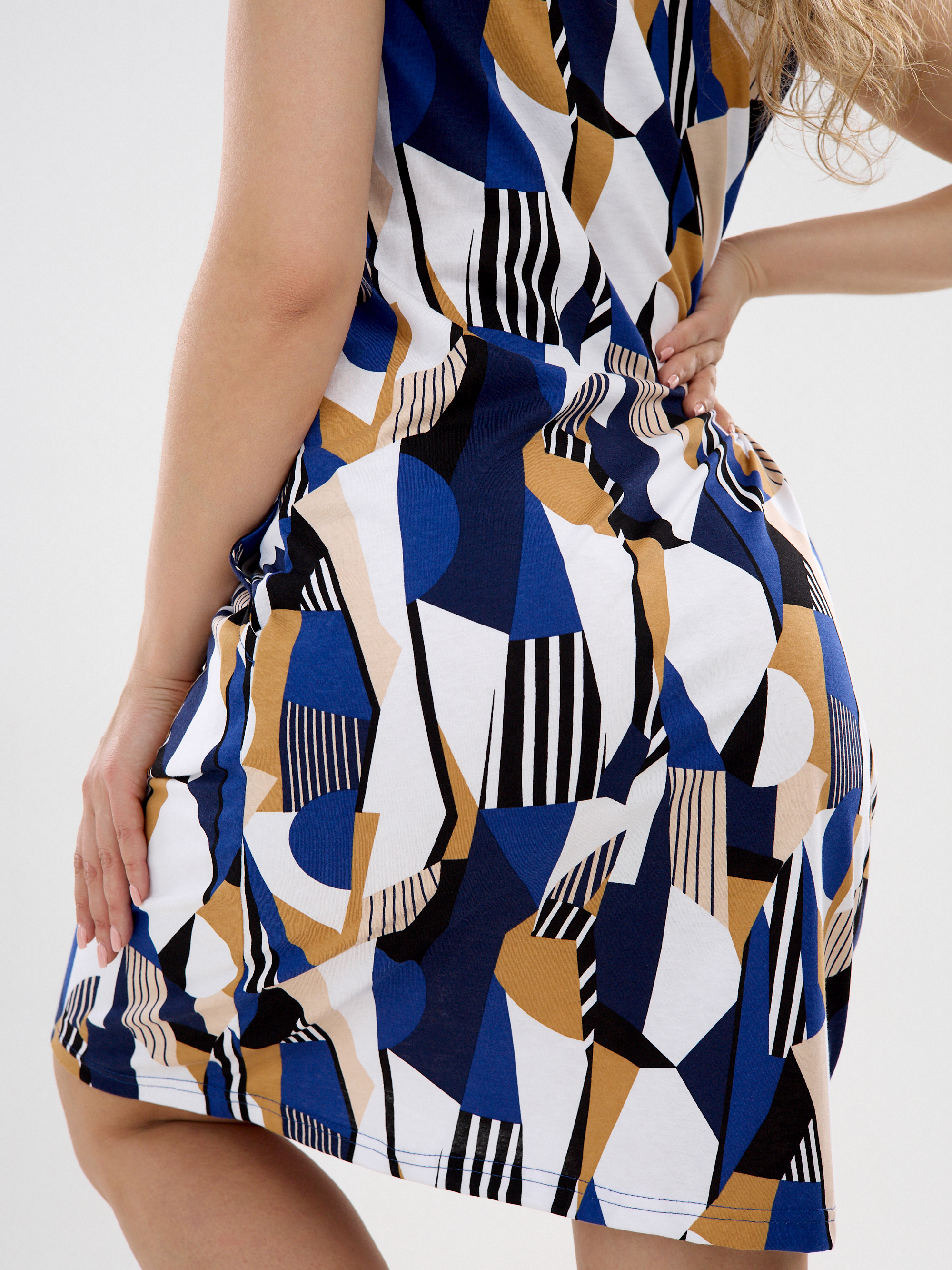 Изделие подходит для отдыха на пляже, для поездок на море, прогулок, домашнего использования и даже как элемент повседневного гардероба. Основа белого цвета легко сочетается с аксессуарами любого стиля, а длина до колена делает образ женственным и актуальным в любой сезон, особенно летом. Приятная к телу ткань и свободный, широкий, обеспечивает свободу движений, а прочный трикотаж придает изделию износостойкость.